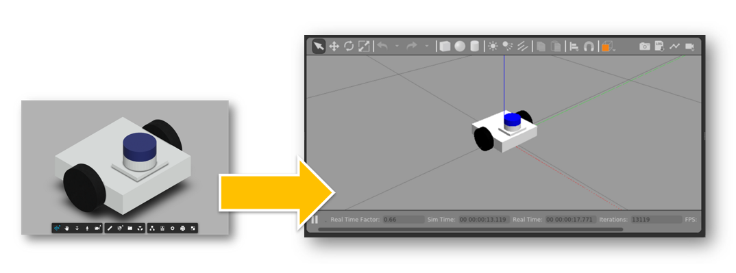 이번 실습을 위해 모바일 로봇에서 가장 많이 사용되는 타입의 로봇, FusionBot을 준비하였습니다. FusionBot을 통해 ROS에서의 로봇 표현 방법을 익힌 뒤, 실제 CAD 파일에서 Gazebo 상의 로봇을 구현하는 실습을 진행해봅시다.